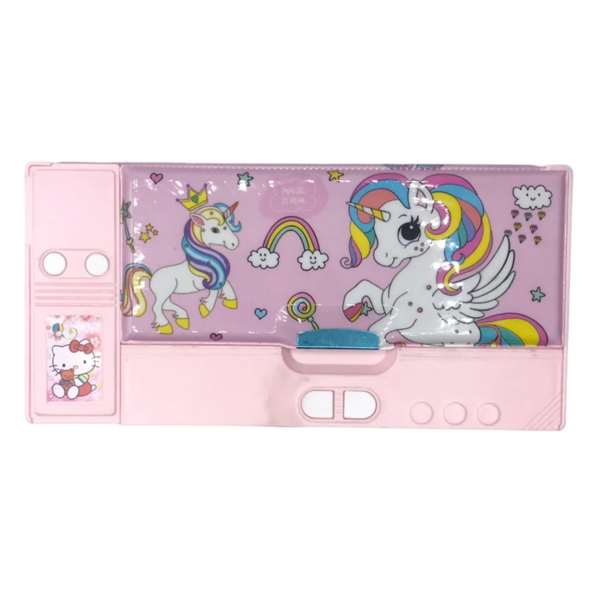Multifunctional Jumbo Dual Side Magnetic Pencil Box (Unicorn)